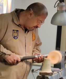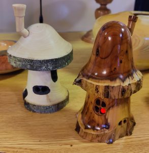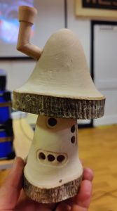 Robert’s demo was to make a “smokehouse”. Think a toadstool like box with a chimney! Robert showed us how to make the base, the roof and the chimney and how to add windows and other features for character. He also added a small holder and an incense block to produce real smoke!